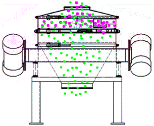直排式振動篩利用振動電機利用其軸上下端的兩組偏心塊(不平衡偏心塊)的相位角以及兩臺電機之間的交叉角度將振動電機的旋轉(zhuǎn)運動變?yōu)樗?、垂直、傾斜以及離心作用的多作用力重疊,再將這種作用力傳遞給篩面,從而達到篩分的目的。改變上下偏心塊的相位角和重量,可以改變激振力的大小和物料的運動軌跡。